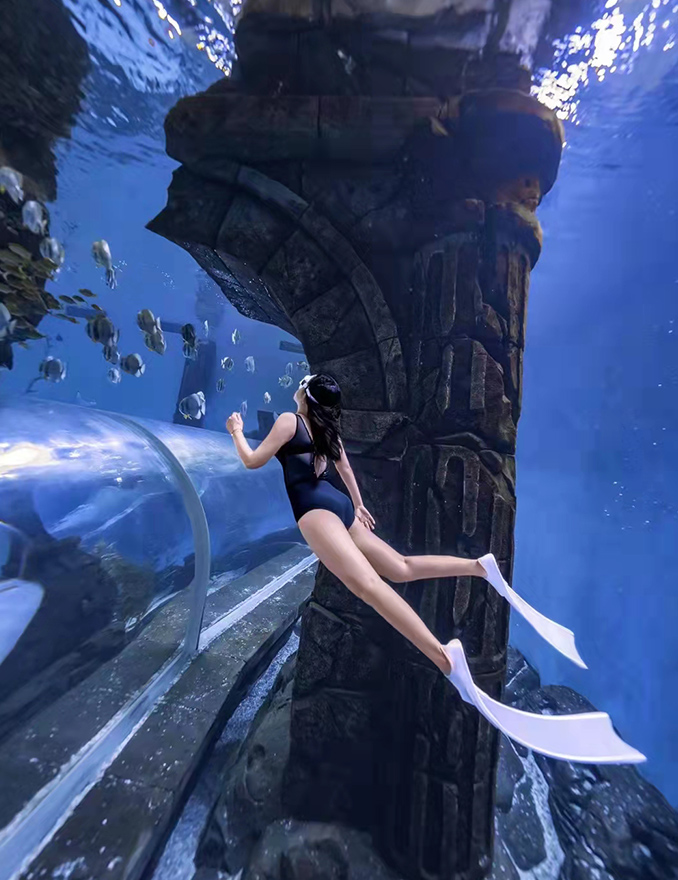 哈爾濱波塞冬全景水下隧道,擁有全國(guó)僅有的以展現(xiàn)充滿傳奇色彩的海神之戰(zhàn)為基礎(chǔ)的巨幕海底世界,全世界獨(dú)一無(wú)二,面向全國(guó)教練團(tuán)隊(duì)開放合作,水肺,自由潛,美人魚,水下拍攝,提供專業(yè)水下攝影場(chǎng)地。